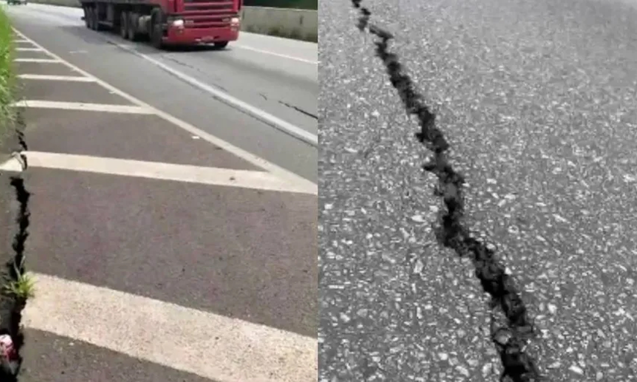 Em março, rachadura apareceu na pista e o trânsito foi bloqueado na região. Obras de reparo terminaram na última sexta (30) e a sinalização foi concluída no fim de semana