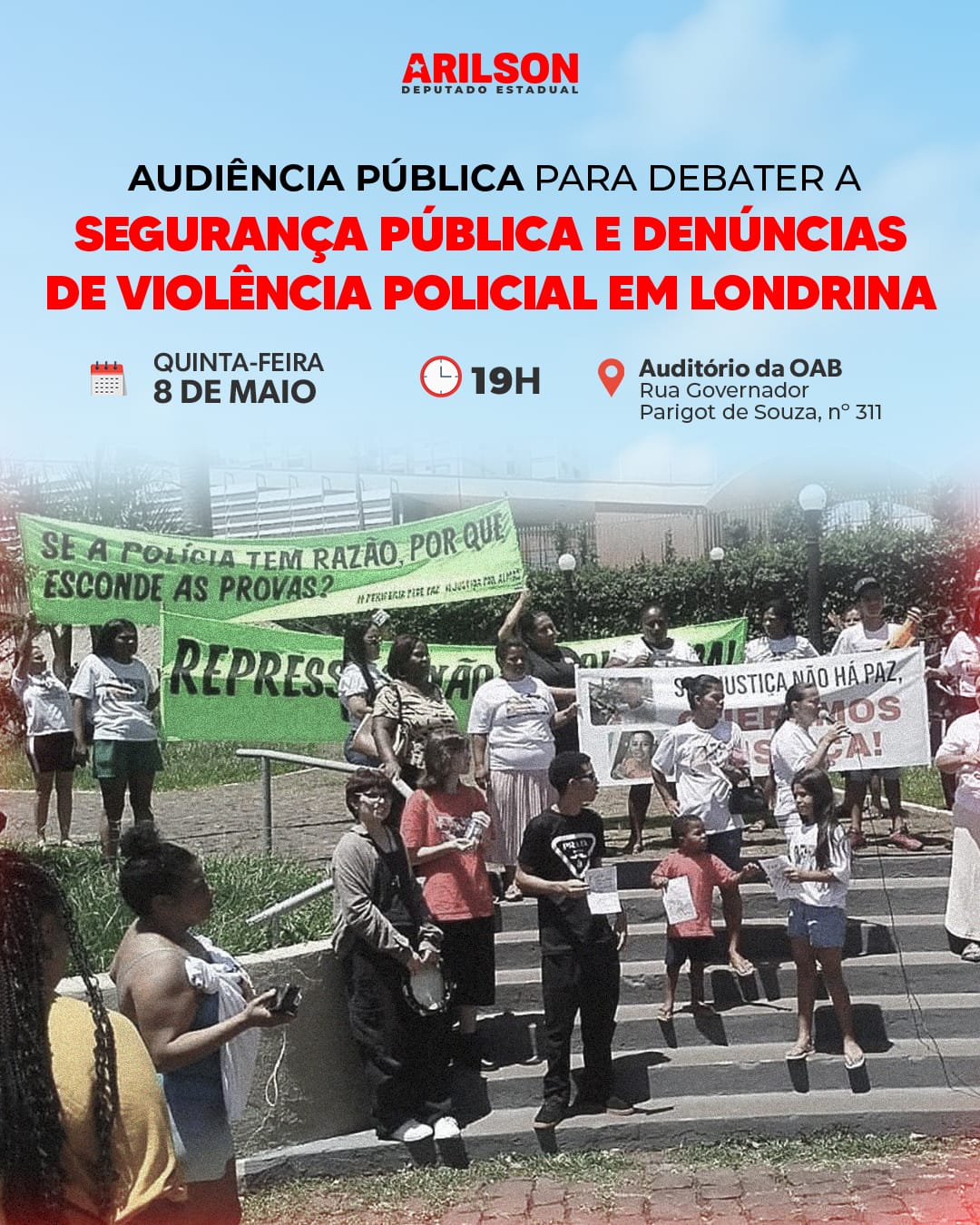 Um dos principais casos a ser debatido é o dos jovens Kelvin Willian Vieira dos Santos, de 16 anos, e Wender Natan da Costa Bento, de 20, mortos em uma abordagem da Polícia Militar no Jardim Leonor, no dia 15 de fevereiro deste ano. As circunstâncias da ação geraram protestos após imagens de videomonitoramento virem a público e colocarem em dúvida a versão oficial apresentada pela polícia. “Diante do aumento das denúncias de violência policial na cidade, vamos promover esse espaço de escuta e, ao final, faremos os encaminhamentos necessários”, afirmou o deputado Arilson. Segundo ele, desde o início do ano, tem recebido diversas denúncias sobre abusos policiais em Londrina e região.