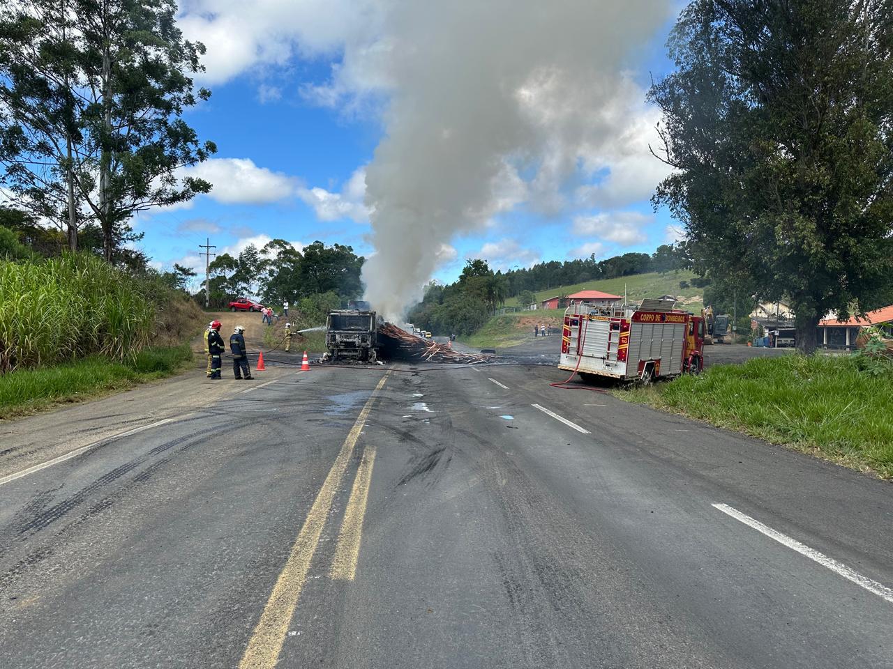 Na manhã desta segunda-feira (14), um caminhão pegou fogo na rodovia BR-153, próximo a Ibaiti, no Norte Pioneiro do Paraná, e causou a interdição da pista por cerca de quatro horas. Segundo a Polícia Rodoviária Federal (PRF), o incêndio teve início na cabine do veículo, causado por uma falha mecânica. O condutor, um jovem de 22 anos, morador da cidade de Reserva (PR), não sofreu ferimentos. Apesar do susto, ele conseguiu sair do caminhão a tempo.