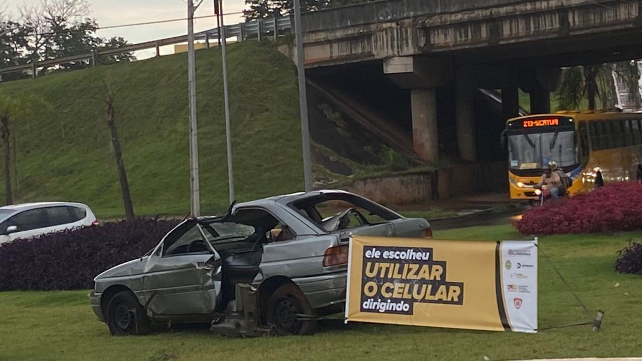 Vários veículos acidentados estão chamando a atenção em pontos de grande movimentação em Londrina. Eles foram estrategicamente posicionados para lembrar a importância de um trânsito consciente e seguro, e do quanto a negligência de motoristas custa a vida de pessoas num piscar de olhos.