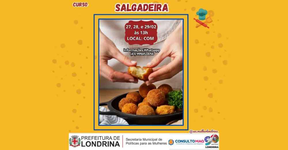 A Secretaria Municipal de Políticas para as Mulheres (SMPM) realiza uma capacitação para ensinar práticas de preparação de salgados entre os dias 27 e 29 de fevereiro. A condução das aulas ficará por conta de Adriely Ferreira, que integra a equipe da Consultomaq e atua como voluntária no Centro de Oficinas para Mulheres, nas ações realizadas em parceria com a empresa.