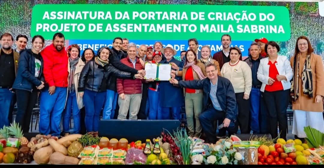 Nesta quinta-feira (29), o governo federal oficializou o Assentamento Maila Sabrina, nos municípios de Ortigueira e Faxinal, no Paraná. A conquista beneficia 450 famílias, que vivem na área desde 2003, e agora contam com a titulação da terra e um investimento de R$ 304 milhões por meio do programa Terra da Gente, voltado à aceleração da reforma agrária. Durante o evento, o presidente Lula destacou a importância da reforma agrária na transformação de terras improdutivas em áreas férteis de produção de alimentos. O local, que por anos foi palco de resistência das famílias do Movimento dos Trabalhadores Rurais Sem Terra (MST) frente a diversas ameaças de despejo, hoje é um modelo de produção diversificada. São cultivadas frutas, grãos, hortaliças e criados pequenos animais, somando 21 toneladas de frutas e 110 mil sacas de grãos e cereais por ano.