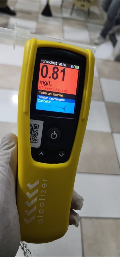 De acordo com o artigo 306 do Código de Trânsito Brasileiro, dirigir sob influência de álcool é considerado crime quando o teste do bafômetro registra 0,34 mg/L ou mais de álcool por litro de ar expelido. Além da pena de detenção de seis meses a três anos, o condutor pode ter o direito de dirigir suspenso ou cassado. Mesmo abaixo do limite criminal, o artigo 165 do CTB considera a conduta infração gravíssima, com multa de R$ 2.934,70 e suspensão da CNH por 12 meses. A PRF reforça que a embriaguez ao volante está entre as principais causas de acidentes graves e mortes nas rodovias brasileiras e alerta para a importância da responsabilidade no trânsito.