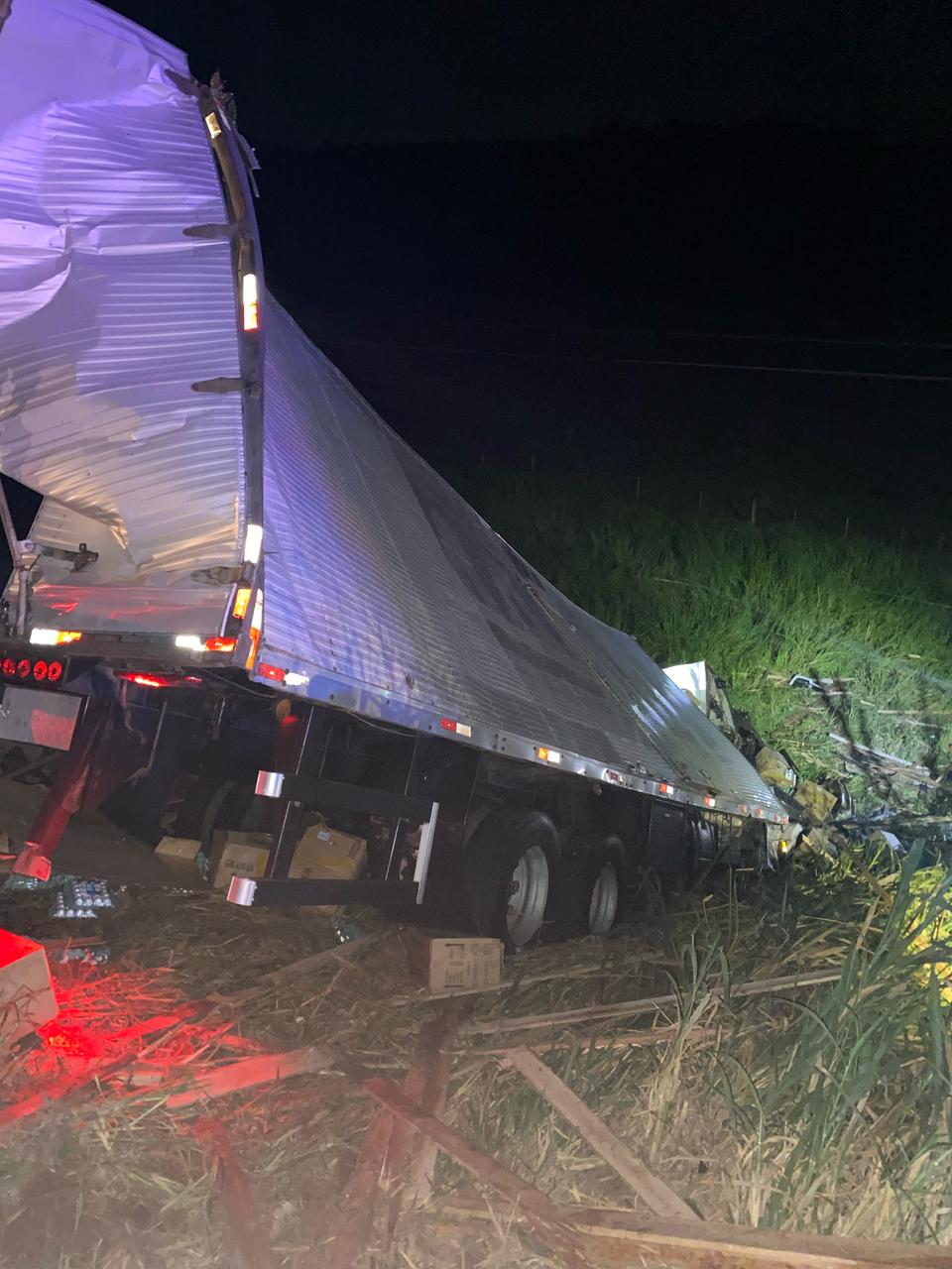 Conforme a PRF, o bitrem seguia no sentido decrescente da via e possuía a Autorização Especial de Trânsito expedida pelo DNIT. Embora a autorização estivesse regular quanto às dimensões do veículo, o bitrem não tinha permissão para circular durante o período noturno