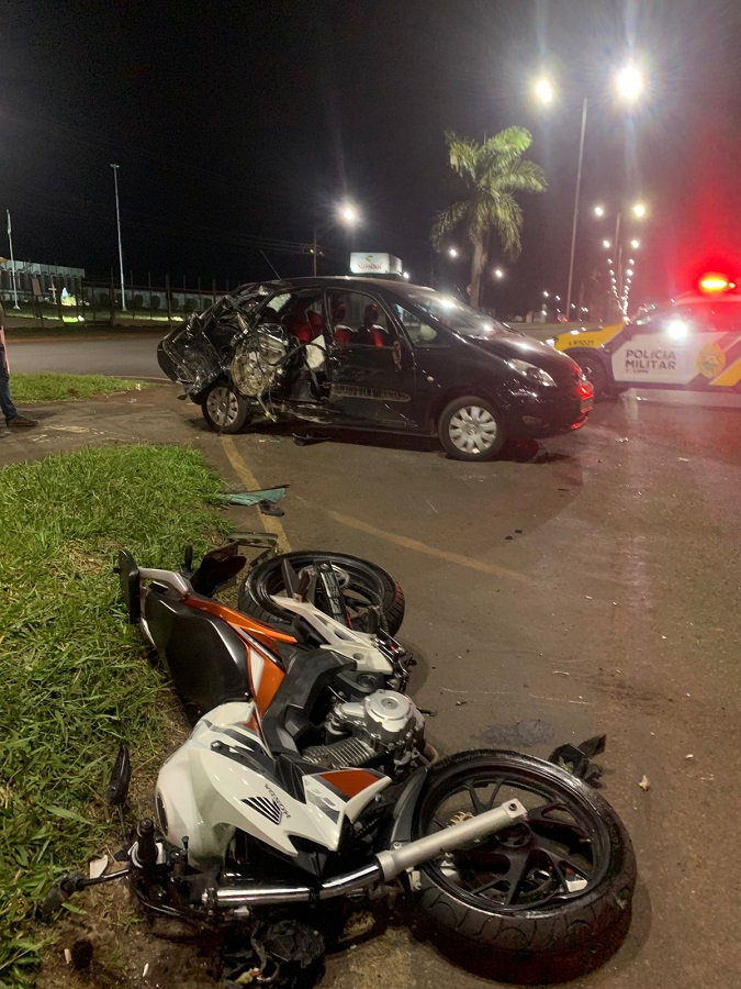 De acordo com informações da PRF, um motociclista que seguia no sentido Apucarana/Arapongas colidiu transversalmente contra um automóvel que transitava no sentido contrário e realizava uma conversão à esquerda para acessar a via marginal