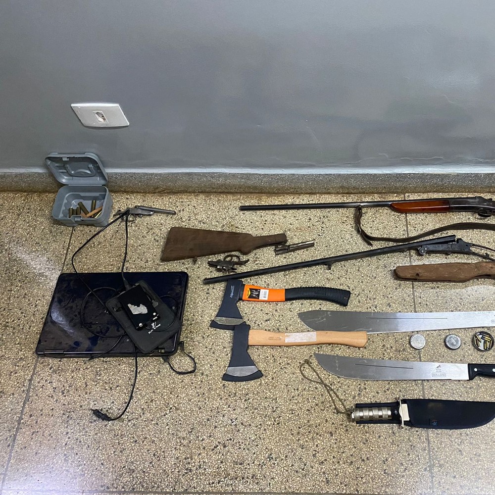 Na casa do suspeito, em Barra do Jacaré, perto de Andirá, a polícia encontrou armas, como outras espadas e munições. A investigação apontou que ele planejava ações semelhantes à invasão.