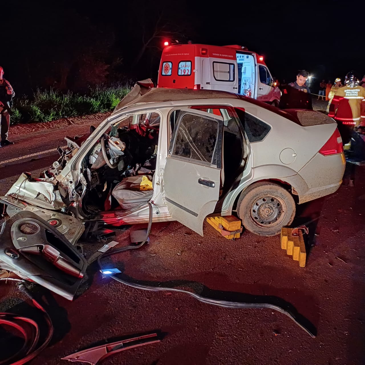 Um trágico acidente envolvendo quatro veículos deixou quatro pessoas mortas e duas feridas na noite desta quinta-feira (8), no km 125 da BR-487, no município de Tuneiras do Oeste, no noroeste do Paraná. De acordo com informações da Polícia Rodoviária Federal, o sinistro começou com uma colisão entre um Ford Fiesta, com placas de Tuneiras do Oeste, e um Fiat Cronos, da Secretaria de Saúde de Maria Helena. O impacto inicial deixou o Fiesta imobilizado no meio da rodovia.
