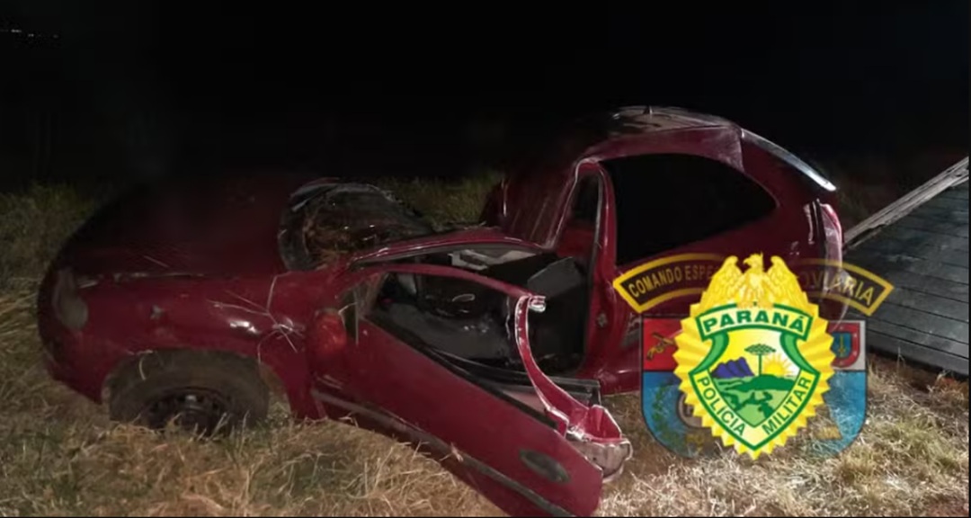 Casal morre após carro bater em poste na PR-450; adolescente fica ferida