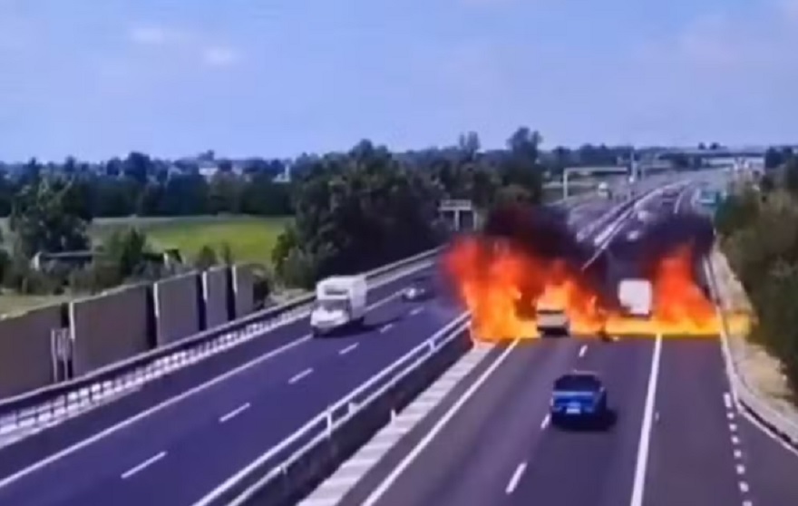 Ultraleve cai em rodovia na Itália, explode e mata casal; motoristas escapam por pouco