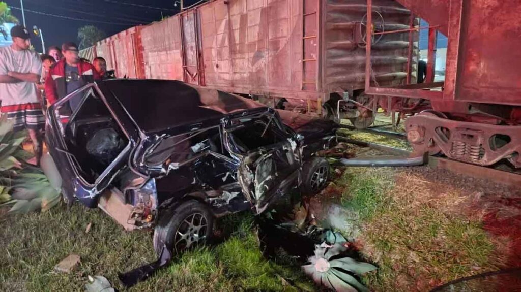 Carro colide com trem em Arapongas e deixa duas pessoas feridas