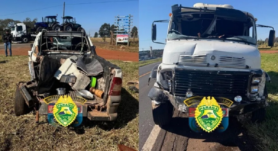 Colisão entre caminhão e carro deixa homem ferido na PR-218, em Sabáudia