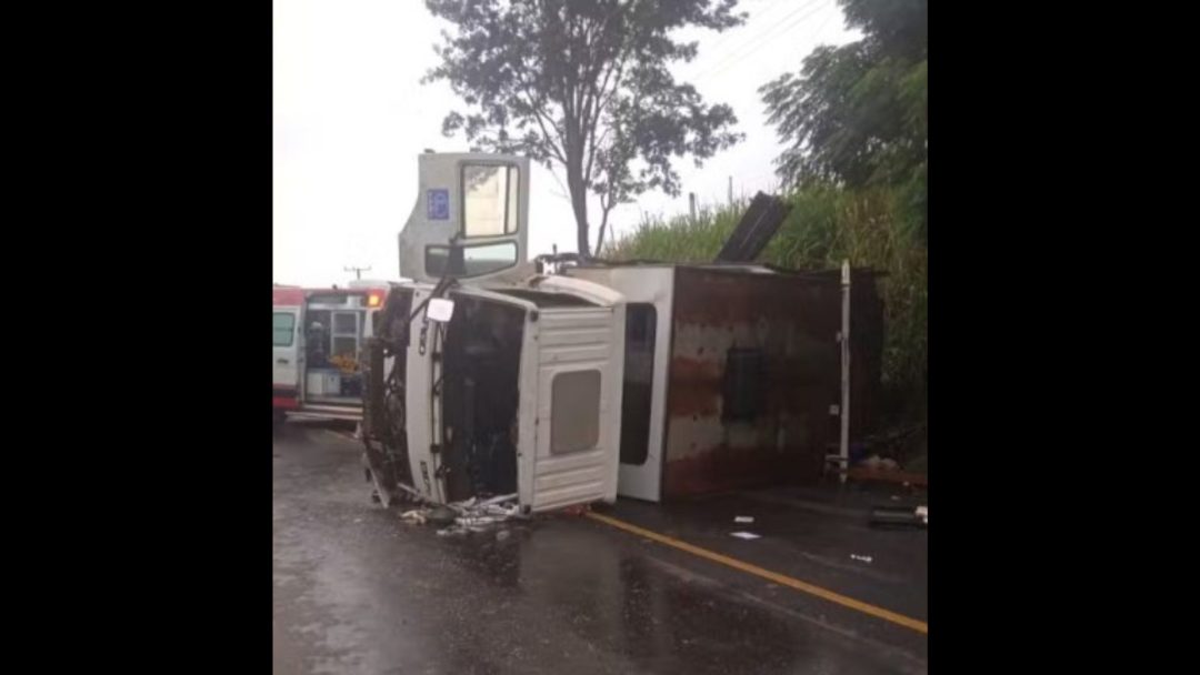 Caminhão com funcionários de empresa tomba na PR-092 e deixa nove feridos