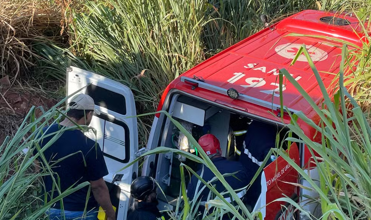 Ambulância com paciente despenca em ribanceira após acidente na PR-454, Norte do Paraná