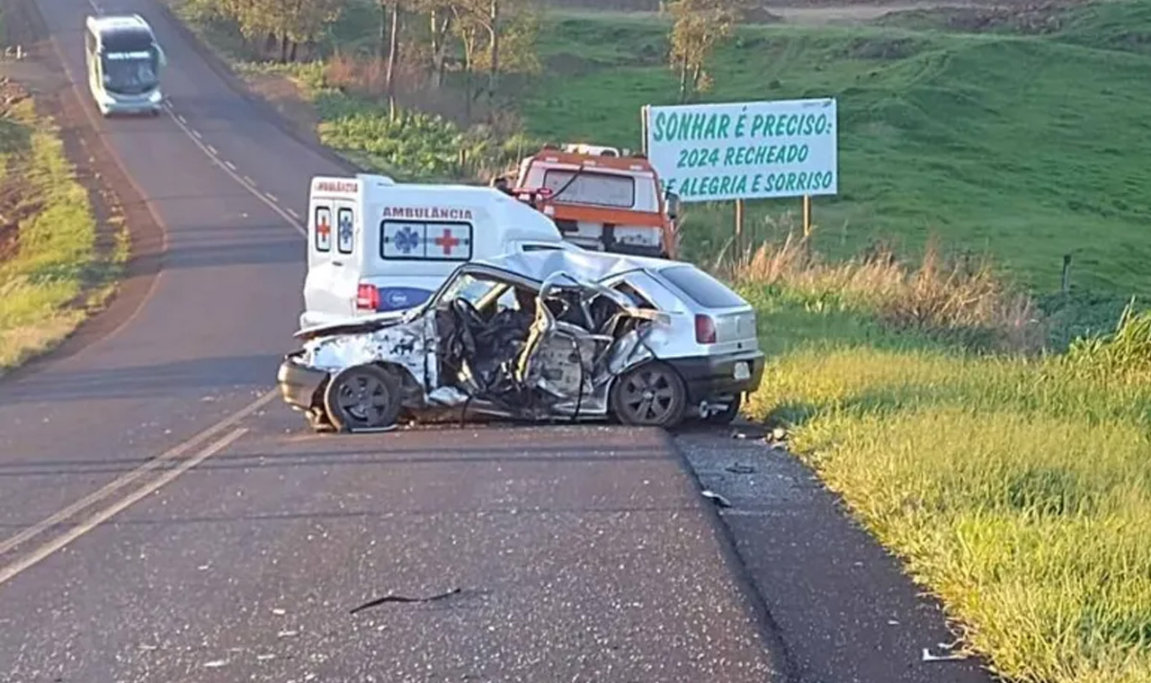 Acidente entre carro e ônibus causa morte na PR 082, no Norte do Paraná