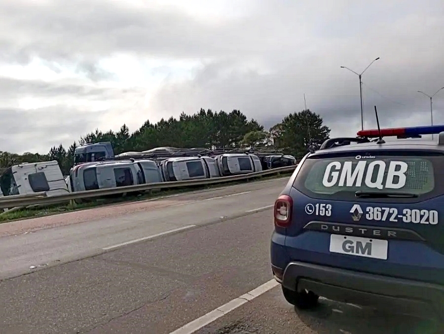Caminhão-cegonha ‘recheado’ de BMWs X4 tomba em rodovia no Paraná