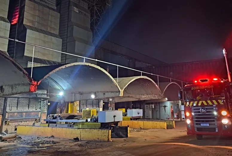 Após fatalidade na C.Vale, bombeiros trabalham em incêndio em silo da Bunge