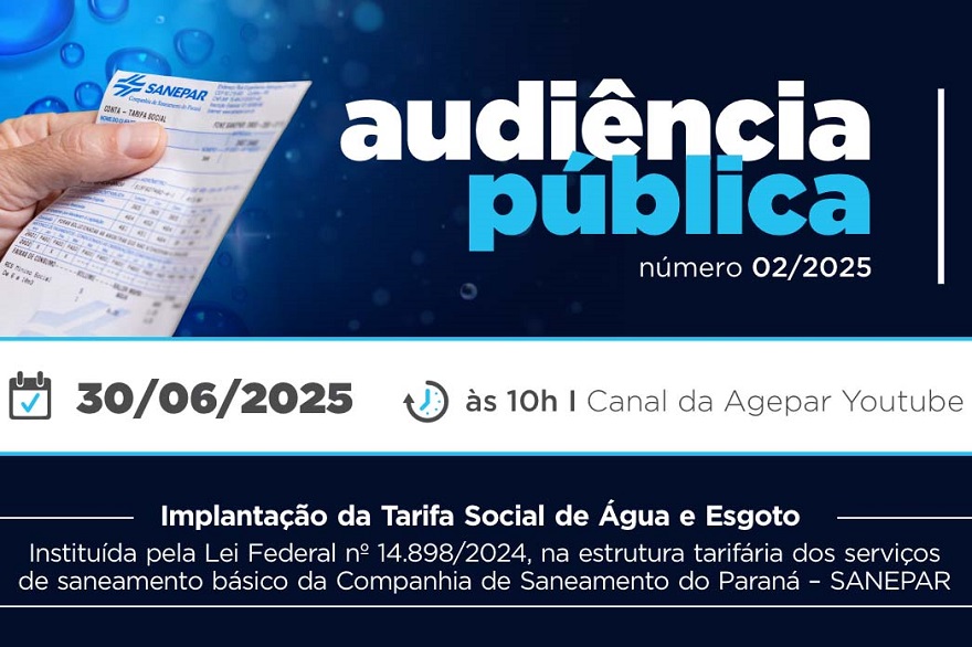 Agepar abre audiência pública sobre Tarifa Social de Saneamento no Paraná