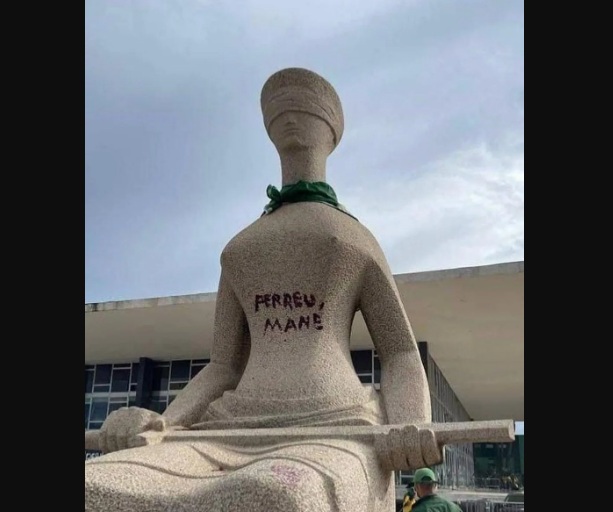 PGR defende prisão domiciliar para ré que pichou estátua “A Justiça” no 8 de janeiro
