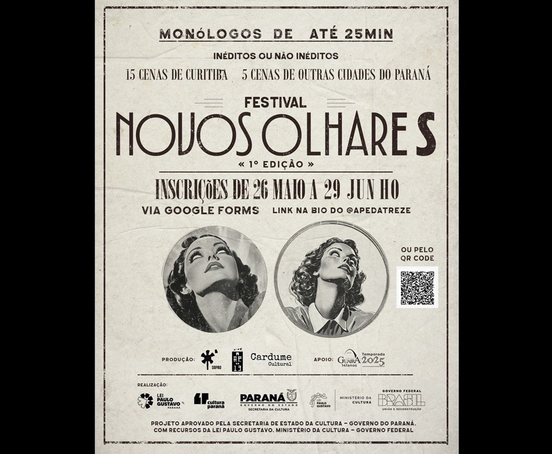 Curitiba terá em 2025 a primeira edição do Festival Novos Olhares, dedicado a artistas emergentes do teatro paranaense