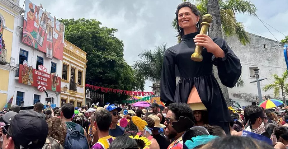 Bonecos Gigantes de Olinda homenageiam Fernanda Torres em desfile do Carnaval