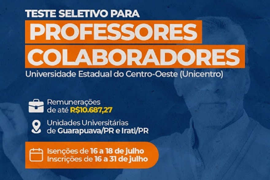 Unicentro abre seleção com 42 vagas para professores; salários chegam a R$ 10 mil
