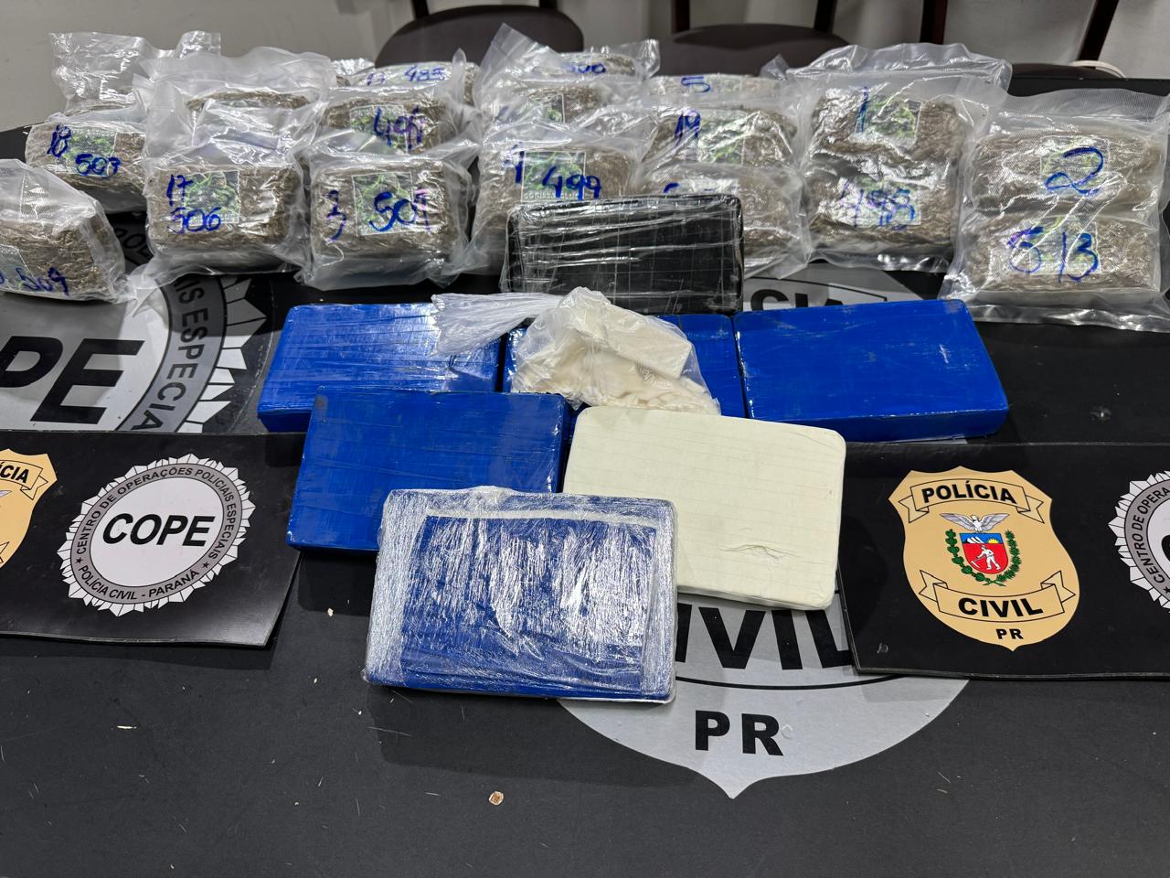 Polícia Civil apreende um quilo de crack, seis de cocaína e oito de maconha na BR-277