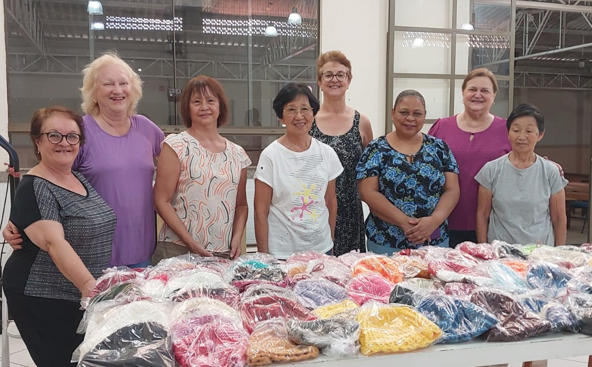 Voluntárias do Santuário de Nossa Senhora Aparecida de Londrina confeccionam e doam toucas de tricô para o Rio Grande do Sul