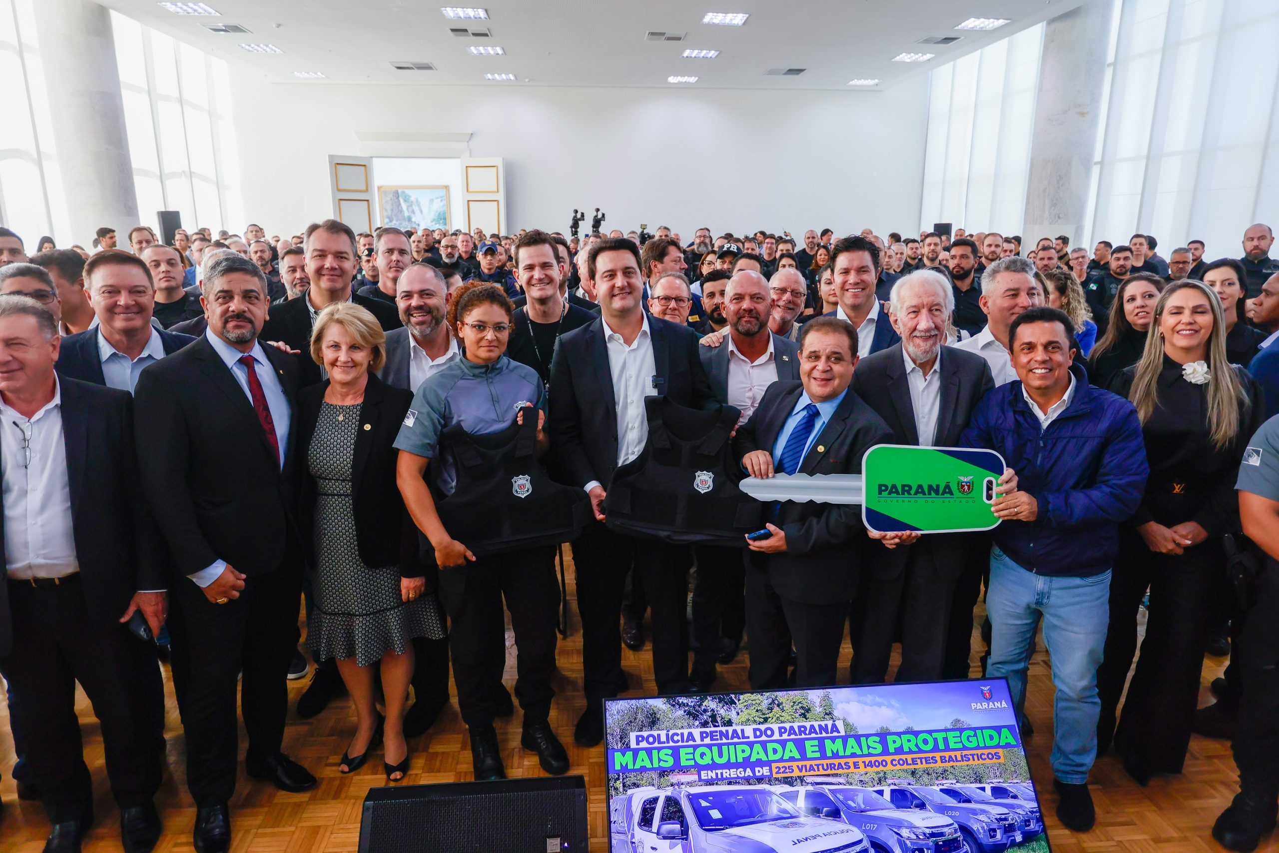 Ratinho Jr. entrega 225 novas viaturas e 1.400 coletes balísticos à Polícia Penal