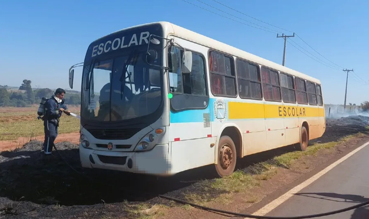 Ônibus escolar pega fogo com 13 crianças dentro no Paraná