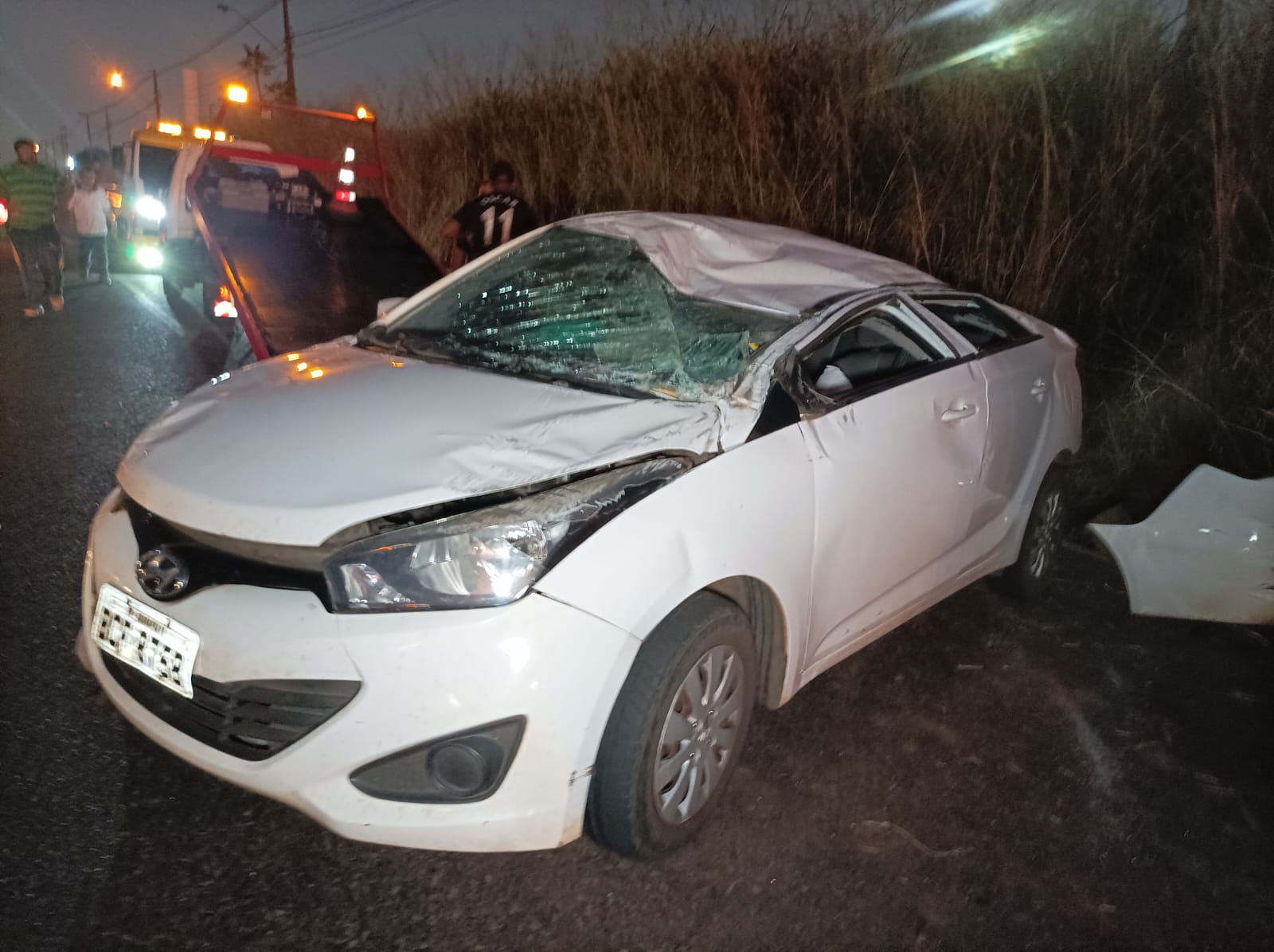 Carro com cinco pessoas capota no Contorno sul de Maringá