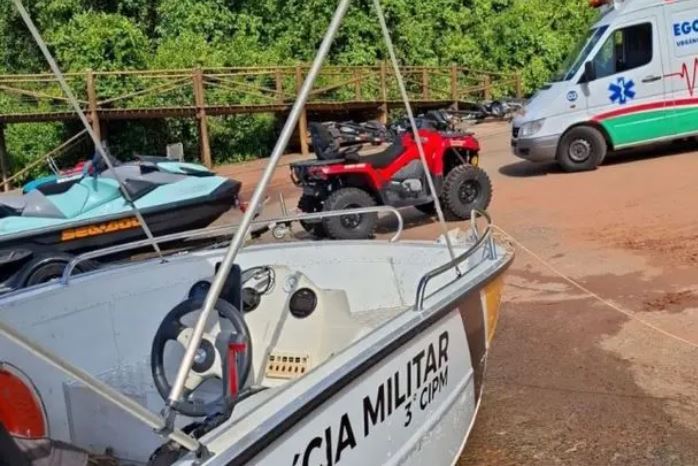 Polícia Militar resgata pai e filho após acidente com jet ski no Rio Paraná