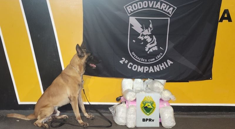 Canil da PRE realiza prisão de casal transportando mais de trezentos mil reais em drogas na PR-986 em Rolândia
