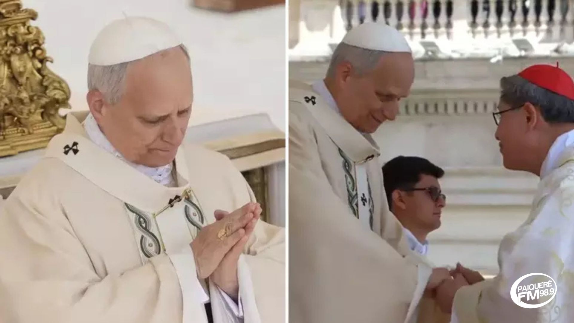 Papa Leão XIV se emociona em cerimônia de entronização no Vaticano