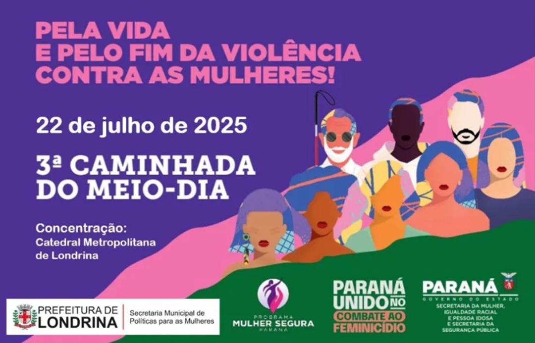 Londrina sediará Caminhada do Meio-Dia pelo Fim da Violência Contra as Mulheres no dia 22
