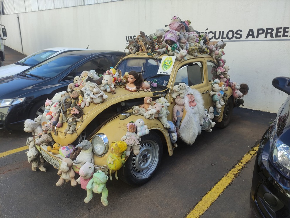 Fusca decorado com ursinhos de pelúcia é recuperado pela PM em Londrina