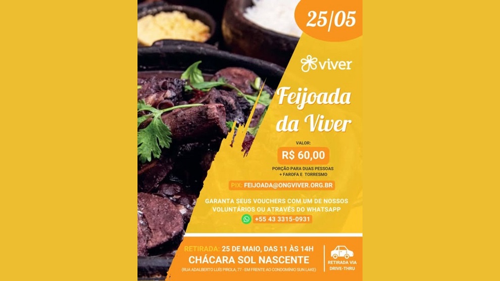 Ong Viver: Feijoada será realizada em formato Drive-Thru no dia 25 de maio em Londrina