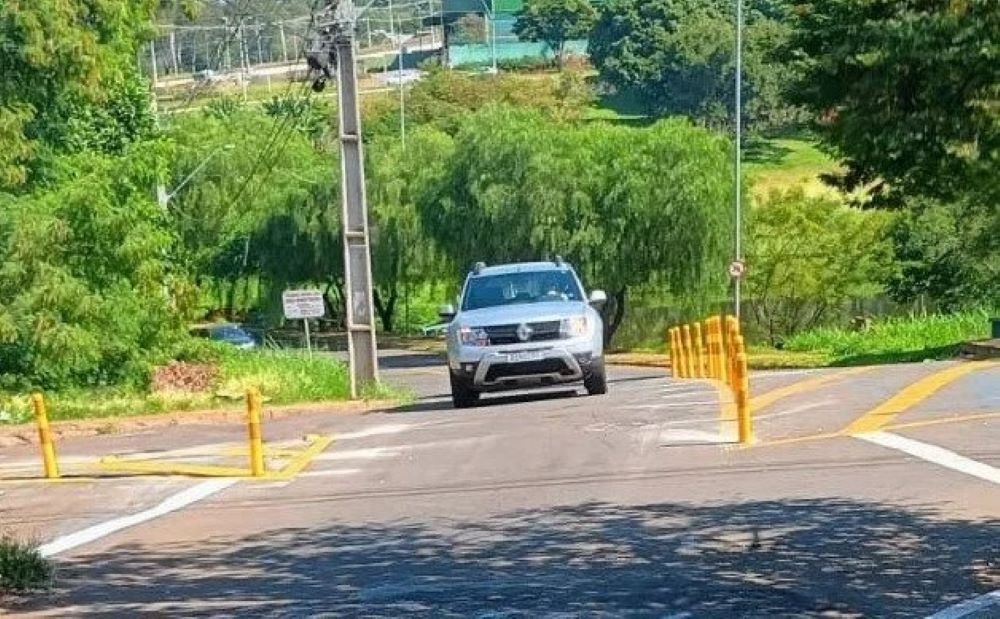 Em Londrina, rua da Gleba Palhano recebe balizadores para disciplinar veículos em movimento