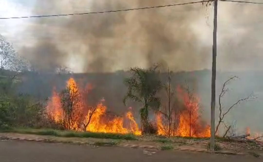 Vídeo: Incêndio de grandes proporções atinge vegetação no Heimtal, em Londrina