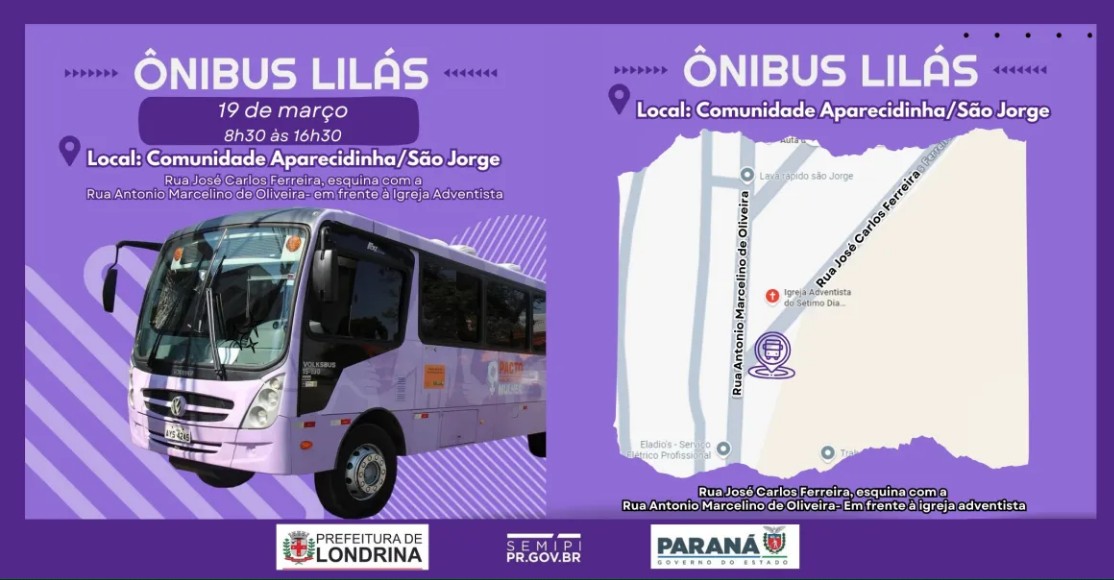 Ônibus Lilás leva atendimento às mulheres da Comunidade Aparecidinha e Jardim São Jorge