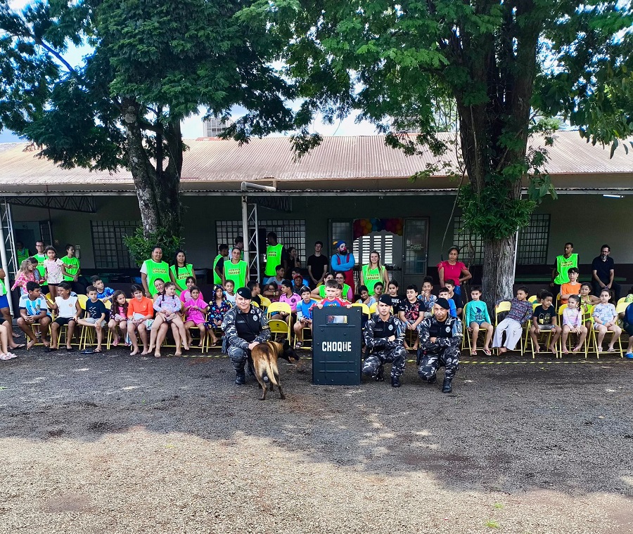 Polícia Militar realiza ação com o Choque Canil para crianças em Londrina