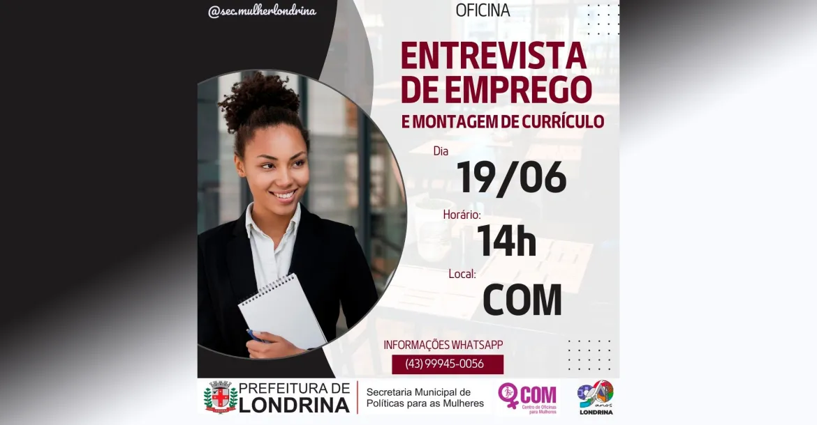 Em Londrina, Secretaria da Mulher realiza oficina de entrevista de emprego nesta quarta-feira