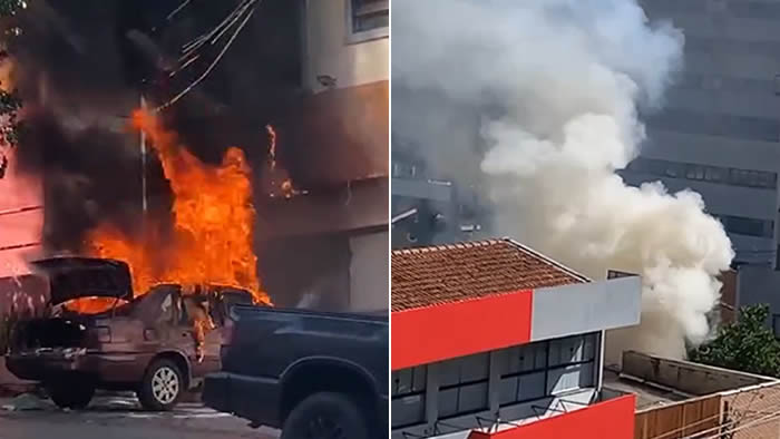 Carro pega fogo e atinge imóvel comercial no Centro de Londrina