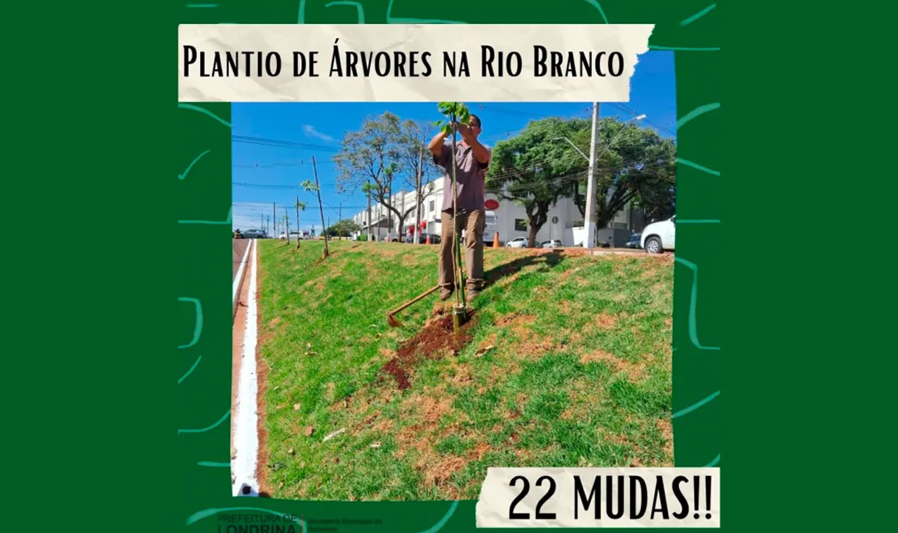 Sema realiza o plantio de 22 mudas de árvores na Avenida Rio Branco, em Londrina