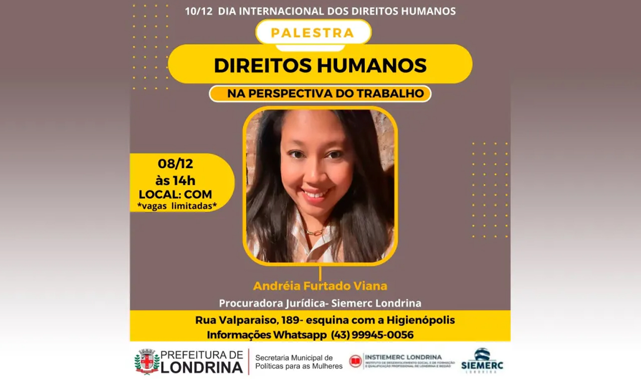 Em Londrina, palestra sobre “Direitos Humanos na Perspectiva do Trabalho” será nesta sexta-feira