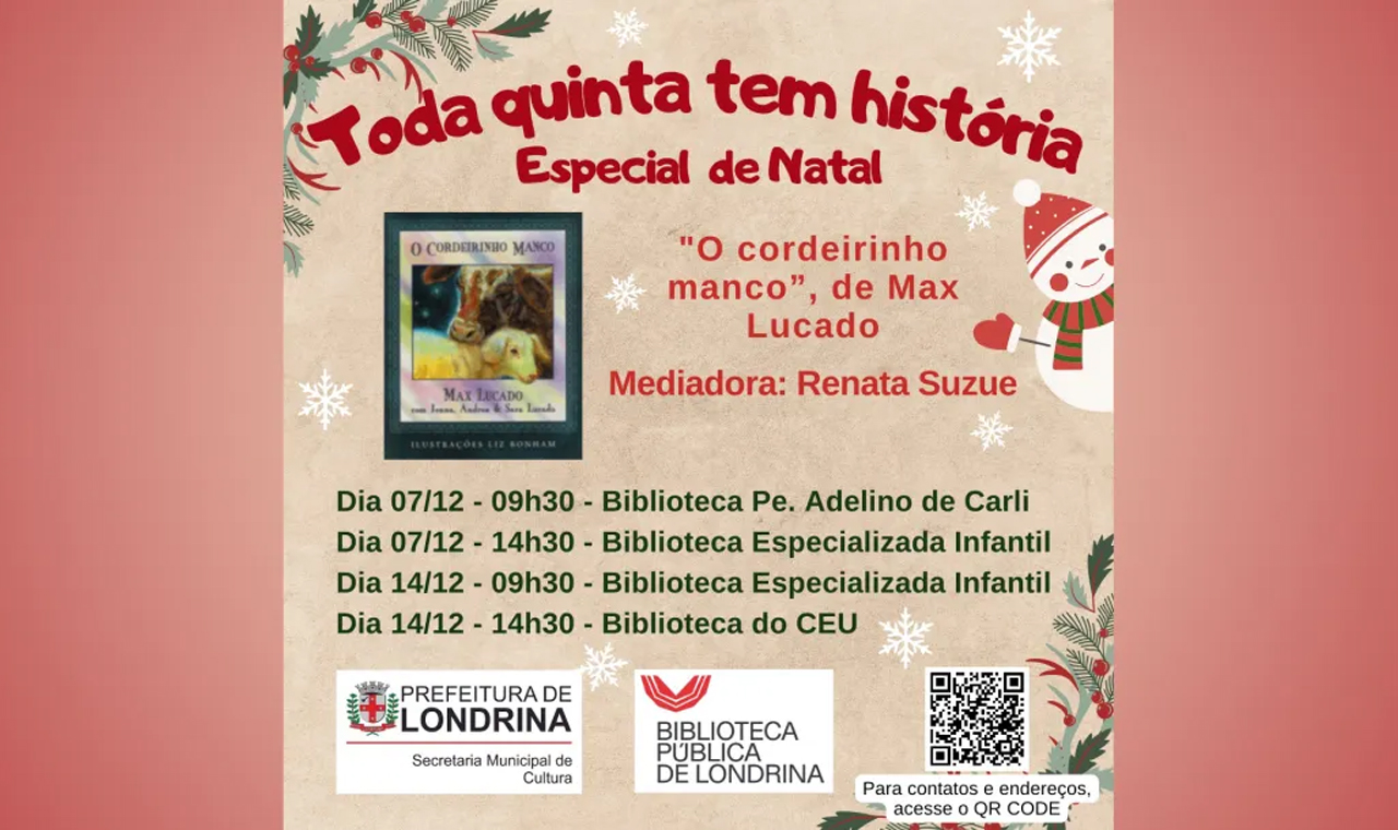 Em Londrina, projeto Toda Quinta Tem História faz especial de Natal neste mês de dezembro
