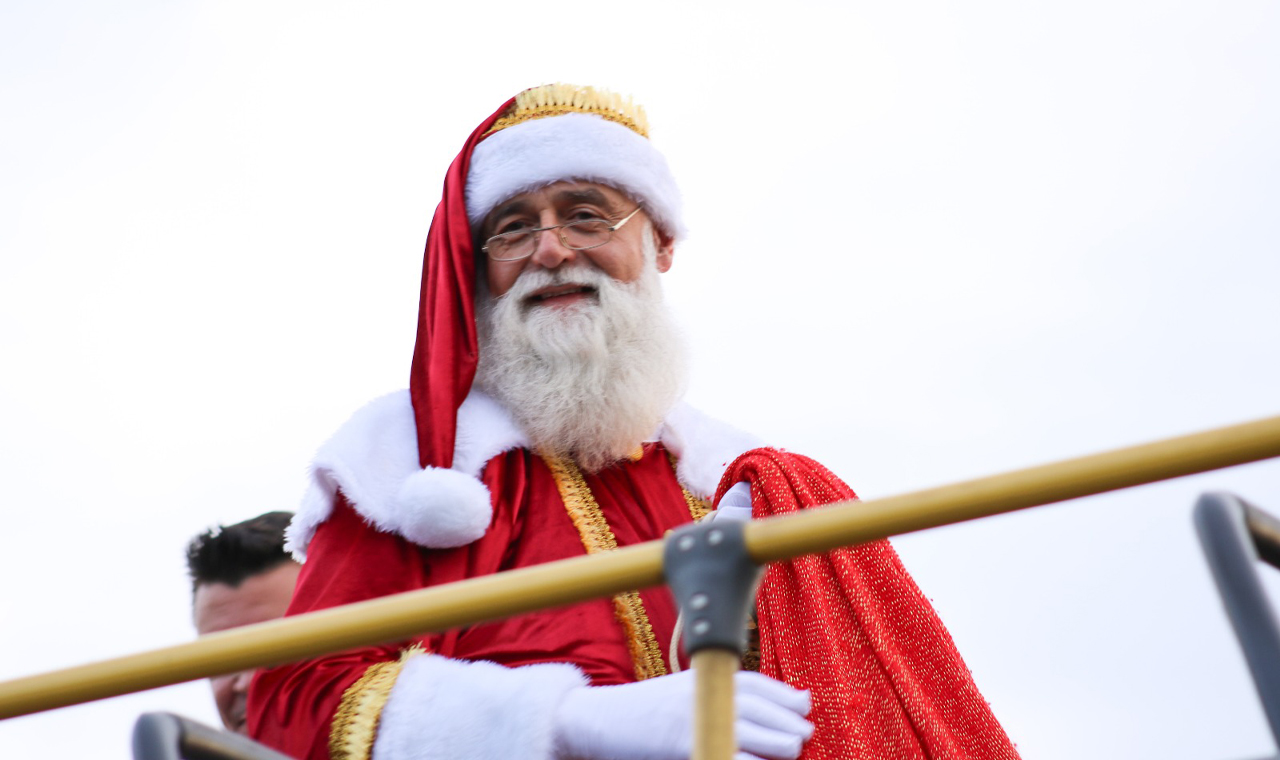 Papai Noel chega na casinha montada na praça Gabriel Martins nesta na quinta