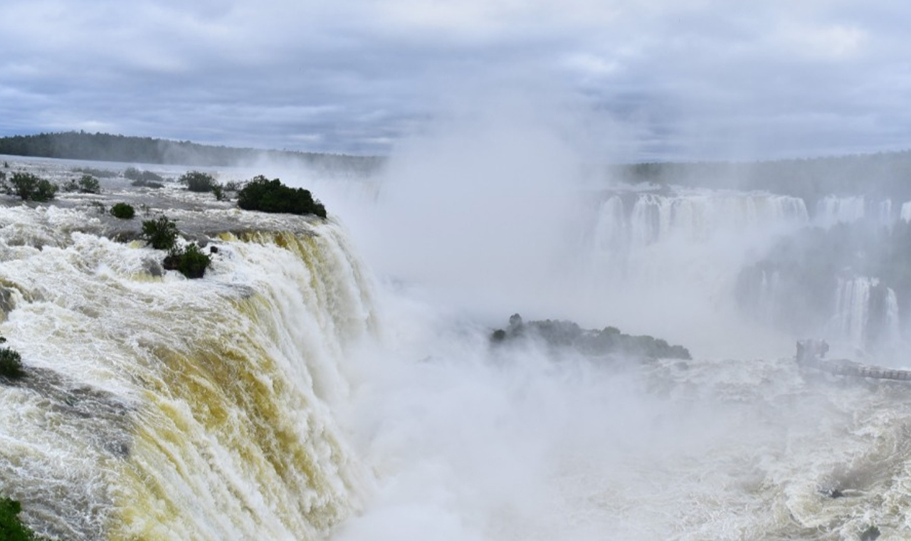 Vazão das Cataratas ultrapassa 10 milhões de litros por segundo e passarela é fechada