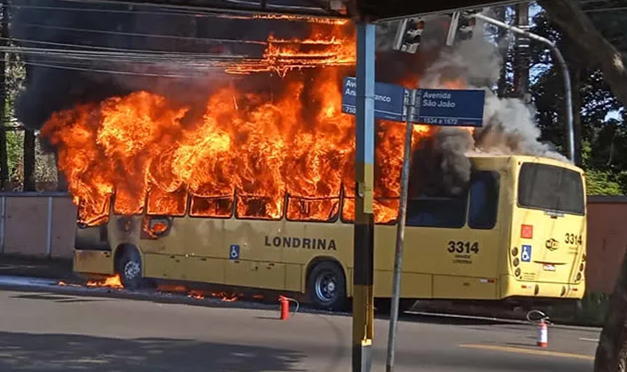 Ônibus do transporte coletivo fica destruído após incêndio na zona leste de Londrina