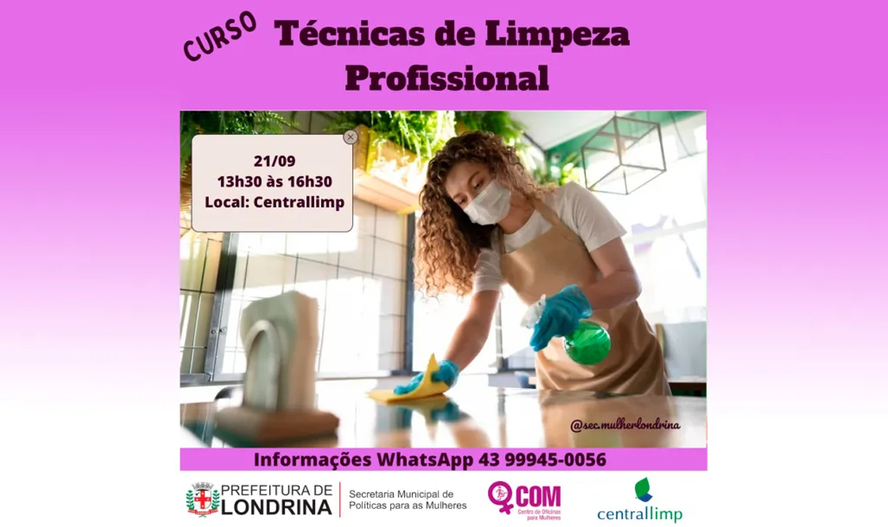 Secretaria da Mulher abre inscrições para curso de Técnicas de Limpeza Profissional em Londrina