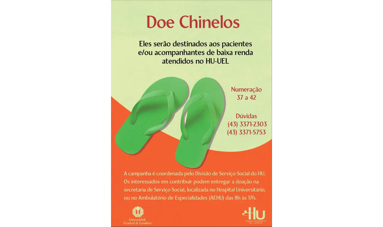 Em Londrina, Hospital Universitário pede doações de chinelos para pacientes